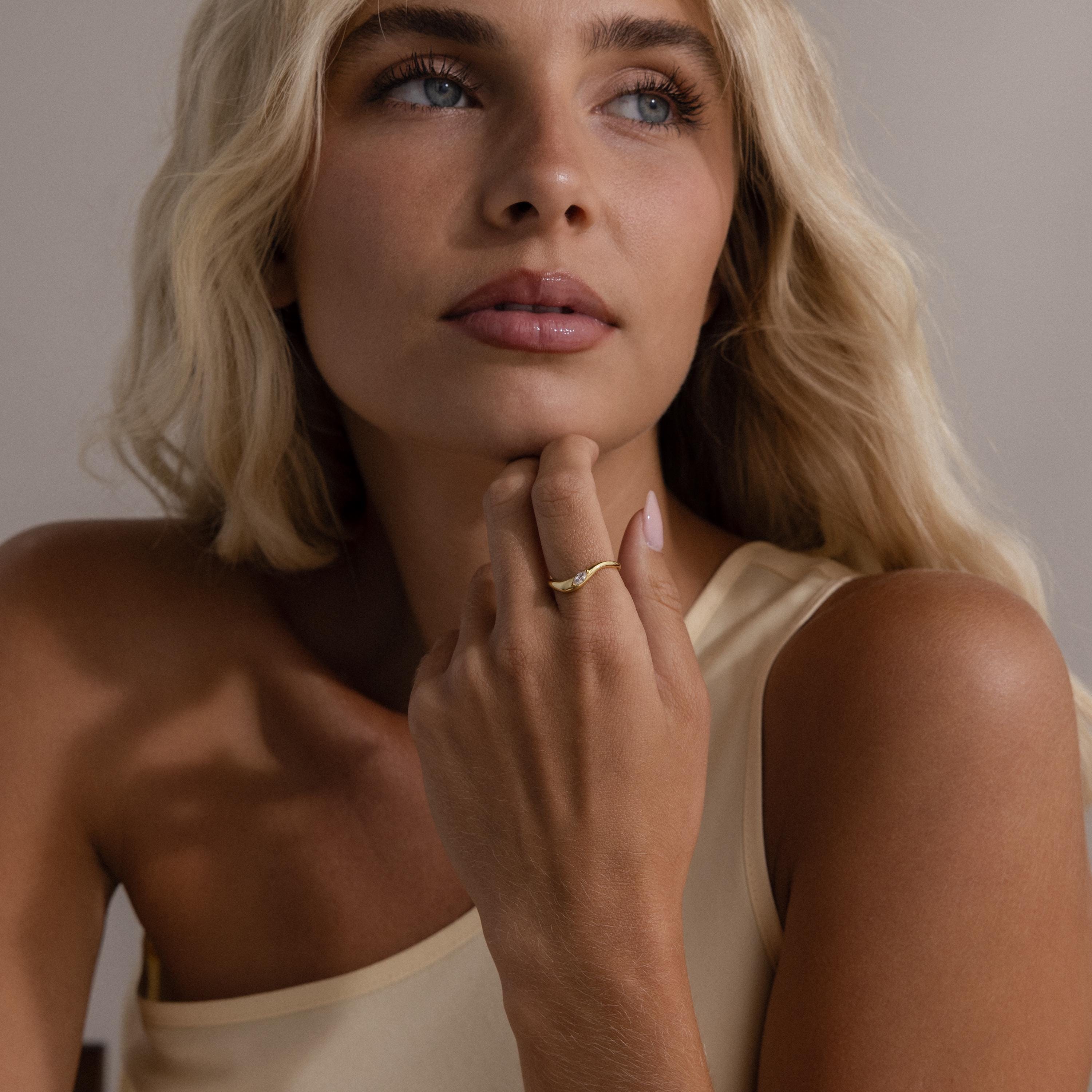 A minimalist ring with mindful elegance, our Zen Diamond Curve Ring features a smooth golden band that flows into a subtle curve, adorned with a single diamond accent that radiates calm sophistication. A piece that balances simplicity and brilliance in perfect harmony _